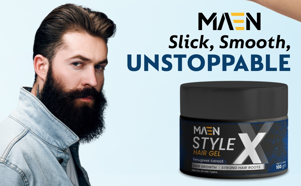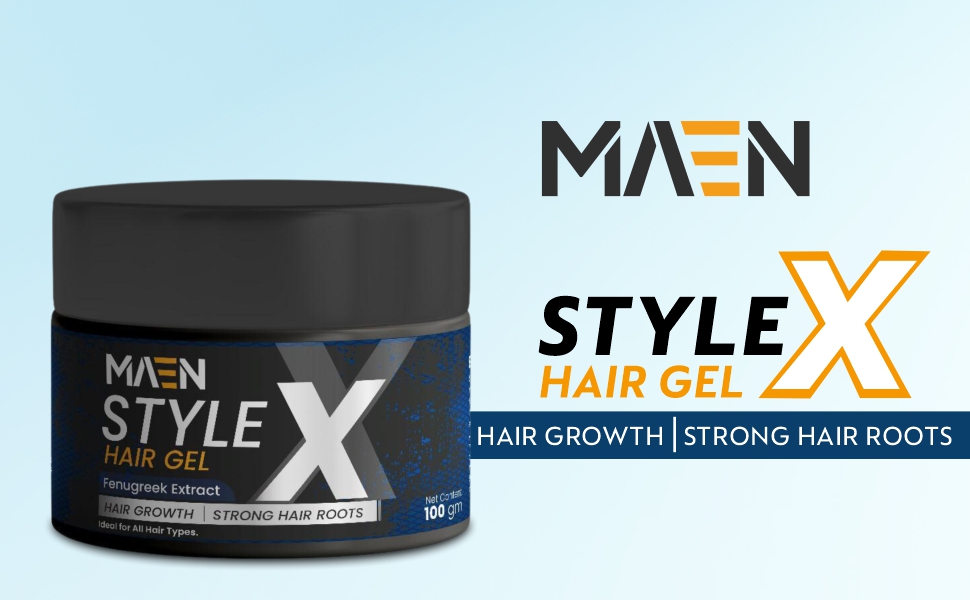 MAEN Style-X Hair Gel For Men With Fenugreek Extract | Hold Hair, Shine & Mate Look | All Hair Types - 100 GM